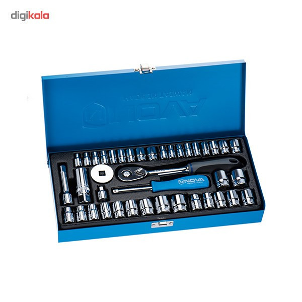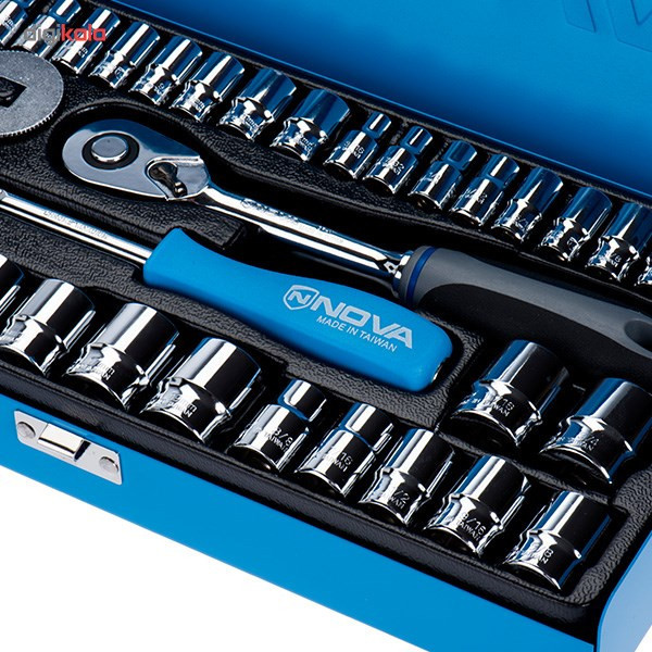 برای باز کردن مهرههای ششگوش، علاوه بر آچارهای تخت و رینگی از آچار و سری بکس هم استفاده میشود. استفاده راحتتر از آچارهای بکس باعث بهکارگیری بیشتر این ابزار نسبت به آچارهای تخت و رینگی، آچارفرانسه و غیره شده است. شرکت «نووا» (Nova) چند ست از این نوع آچار را تولید میکند. مدل NTS-7002 ازجملهی محصولات شرکت نووا محسوب میشود. این مدل با طرح سریهای بکس ششگوش تولید میشود. این مدل دارای 35 سری بکس با درایوهای ¼ و 8/3 اینچ است. سوکتهای درایو ¼ اینچ، شامل 9 سری با استاندارد SAE یا اینچی و 9 سری با استاندارد متریک میشوند. همچنین سریهای درایو 8/3 اینچ، شامل 9 سری با استاندارد متریک و 7 سری با استاندارد SAE میشوند. در کنار سریهای بکس این محصول یک سری بکس شمارهی 16 بلند (مخصوص باز کردن شمع خودرو)، یک آچار بکس جغجغهای، یک دستهی بکس پیچگوشتی و یک اضافه شوندهی طول با اندازهی 70 قرار دارند. جنس بهکاررفته در ساخت آچارها، سریهای بکس و سایر محتویات مدل NTS-7002 از آلیاژ کروم-وانادیوم است. بهکارگیری این آلیاژ در ساخت ابزار، باعث بالا رفتن مقاومت آنها در برابر ضربه، حرارت و فشار خواهد شد و از زنگزدگی هم جلوگیری میکند. سریهای 6 گوشهای کاملا بر روی مهره قرار میگیرد و بیشتر برای استفادههای عمومی و مواردی که نیاز به فشار و نیروی زیاد برای باز کردن مهره نداشته باشیم، کاربرد دارد. شرکت نووا این مدل و محصول 39 عددی را در یک جعبهی فلزی ارگانیزه بسیار محکم و در ابعاد5×15×32 سانتیمتر تولید کرده است.
