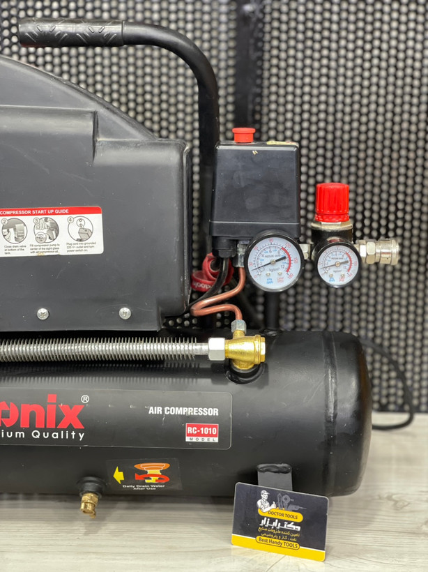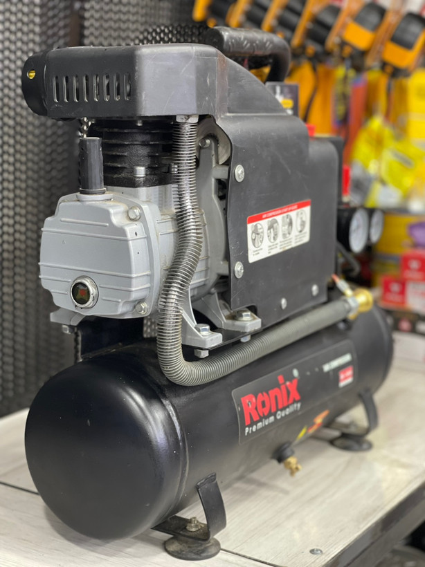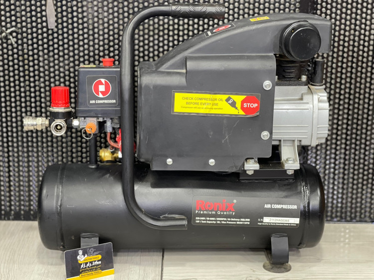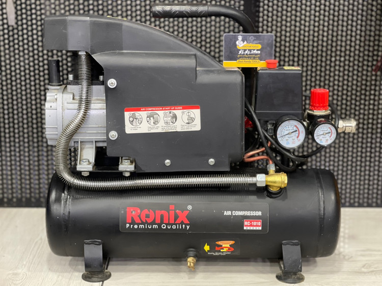بهرهگیری از تجهیزاتی مانند پمپ و کمپرسور که موجب حرکت سیالات میشوند کمک شایانی به بشر کرده است. این تجهیزات، نیروی مورد نیاز برای مکش یا رانش سیال را ایجاد میکنند و موجب حرکت آن با سرعت و فشاری مشخص میشوند. بیشترین میزان استفاده از کمپرسورهای هوا در صنعت است اما این تجهیزات با قدرتهای کمتر نیز به منظور انجام کارهای نیمه صنعتی مورد استفاده قرار میگیرند. محصولی که در تصویر مشاهده میکنید کمپرسور مدل «RC-1010» است که توسط شرکت «رونیکس» (Ronix) تولید میشود و توانی برابر 746 وات دارد و برای مصارف صنعتی و غیر صنعتی مناسب است. منبع تغدیهی این کمپرسور برق 220 ولت شهری بوده و قادر است جریانی با حداکثر فشار 116 پی اس آی ایجاد کند. این کمپرسور ظرفیتی برابر 10 لیتر دارد و دبی آن 200 لیتر بر دقیقه است. این محصول دارای فشارسنج بوده و میزان فشار را به خوبی نمایش میدهد. یکی از نقاط قوت کمپرسور در قسمت خروجی آن است و از دو نازل خروجی بهره میگیرد. در این صورت میتوانید دو جریان خروجی هوایی داشته و با کمک شیری که در بالای آن قرار دارد دبی خروجی را کنترل کنید. در صورتی که فشار هوای داخل مخزن بیش از حد شود، سوپاپ اطمینانی وجود دارد که با خروج هوا میزان فشار را سریعا کاهش میدهد. این محصول دارای کلید استارتی با تکنولوژی LEFCO بوده و به صورت چرخشی عمل میکند. به همراه این کمپرسور یک روغن روانکاری نیز عرضه میشود.