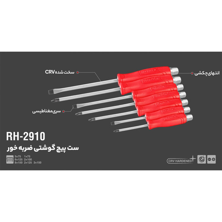 سری پیچ گوشتی یک سر چهارسو یک سر دو سو رونیکس مدل RH2910 بسته 7 عددی
