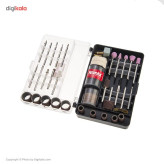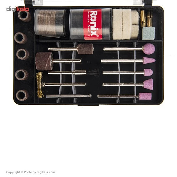 - ۳ عدد کولت - ۱۲۲ عدد لوازم جانبی شامل: ۵ سنگ فرز - ۷ متهی الماسه - ۱۲ سنباده استوانهای - ۲ میلهی نگهدارندهی سنبادهی استوانهای - ۳۶ صفحه برش دایرهای - ۱ سنگ سنبادهی معمولی مکعب - ۴ سنگ سنبادهی الماسه - ۲ فرچهی مویی و سیمی - ۱ کاتر - ۳ مته - ۱ آچار مخصوص - ۲ میلهی نگهدارندهی سنگ برش و سنگ سنبادهی الماسه - ۴۰ صفحهی دایرهای سنباده - میله اتصال سنباده - ۲ سنگ برش فولاد - ۱ شلنگ و ۱ چراغ LED - کیف برزنتی دفترچهی راهنما به زبان فارسی و لاتین