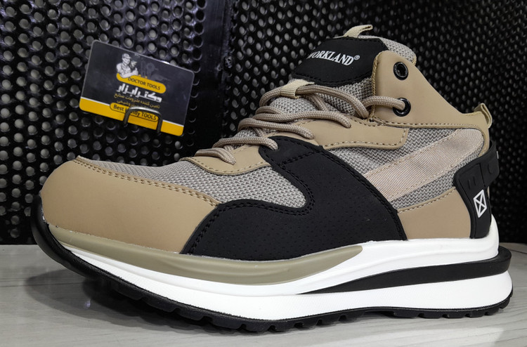 این مدل کفش متعلق به برند WORKLAND تولید شده در کشور چین می باشد . وزن این کفش با توجه به نیم ساق بودن آن نسبتا سبک بود و هر لنگه آن ( سایز 42 ) 515گرم وزن دارد . طراحی آن بسیار اسپرت و ظریف بوده و اصلا در نگاه اول کفش ایمنی بنظر نمی رسد . جنس رویه آن ترکیبی از چرم جیر و پارچه بافت مش تنفس پذیر با طراحی بسیار زیبا و چشمگیر می باشد . سرپنجه این کفش از جنس استیل است . زیره کفش از جنس PU , آنتی شوک ( SHOCK ABSORPTION جاذب ضربه ) در قسمت پاشنه پا و ضد لغزش بوده و منعطف و همچنین مقاوم در برابر روغن و مشتقات نفتی می باشد . ساق کفش بصورت نیم ساق بوده و قوزک پا را بخوبی پوشش می دهد .