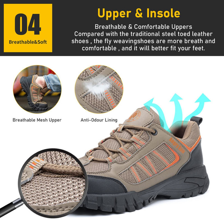 این مدل کفش متعلق به برند WORKLAND تولید شده در کشور چین می باشد .کفش در بخش رویه و زیره دارای کیفیت بسیار بالایی می باشد . طراحی آن بسیار اسپرت و ظریف بوده و اصلا در نگاه اول کفش ایمنی بنظر نمی رسد . جنس رویه آن ترکیبی از پارچه مش و چرم بوده و کفش دارای تنفس پذیری بالایی می باشد . سرپنجه این کفش از جنس استیل است . زیره کفش از جنس EVA و آنتی شوک ( SHOCK ABSORPTION جاذب ضربه ) و ضد لغزش و همچنین مقاوم در برابر روغن و مشتقات نفتی می باشد . وزن هر لنگه این کفش ( سایز 43 ) 490 گرم می باشد .