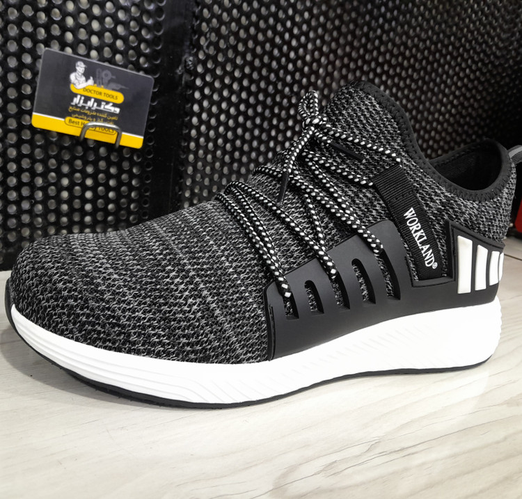 این مدل کفش متعلق به برند WORKLAND تولید شده در کشور چین می باشد . وزن این کفش آن نسبتا سبک بود و هر لنگه آن ( سایز 42 ) 520گرم وزن دارد . طراحی آن بسیار اسپرت و ظریف بوده و اصلا در نگاه اول کفش ایمنی بنظر نمی رسد . جنس رویه آن ترکیبی از پارچه بافت مش تنفس پذیر با قابلیت شستشو و با طراحی بسیار زیبا و چشمگیر می باشد . سرپنجه این کفش از جنس فولاد است . زیره کفش از جنس PU و لاستیک , آنتی شوک ( SHOCK ABSORPTION جاذب ضربه ) در قسمت پاشنه پا و ضد لغزش بوده و منعطف و همچنین مقاوم در برابر روغن و مشتقات نفتی می باشد .